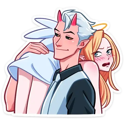 This sticker pack, titled «Angel or Demon», features 22 static stickers. Pack popularity: 77 pts. Matching emojis: 😑 🤯 🤗 🤨 🤬 😓 😫. Add the pack to your app or use the direct link: https://en.tgtg.su/pack/AngelorDemonART/install